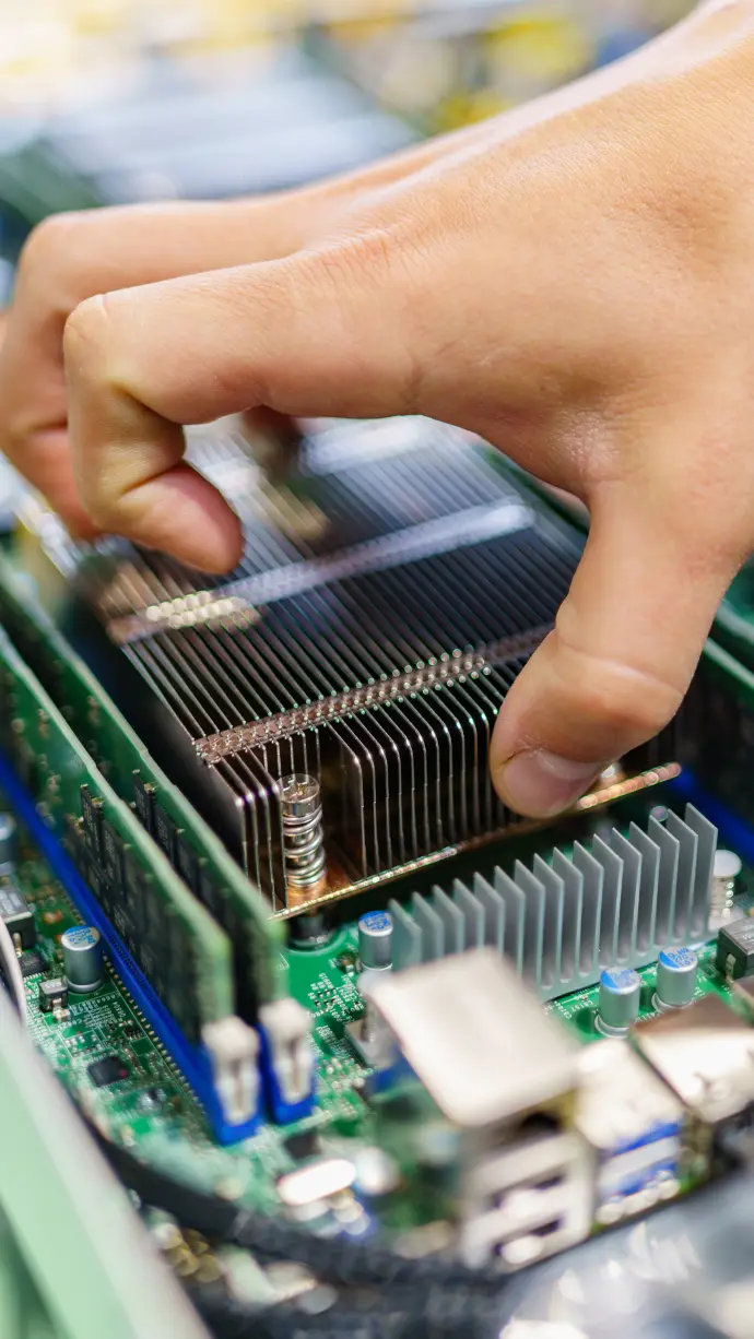 Prise en charge complète de l’assemblage des composants électroniques (circuits imprimés, processeurs, mémoire…), avec une expertise spécifique dans le montage de serveurs.